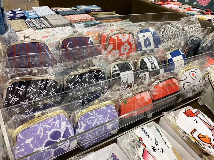 こちらは手ぬぐいで作ったがま口です。サイズはコインパースサイズとコスメポーチサイズの2種類。プレゼントに喜ばれます。