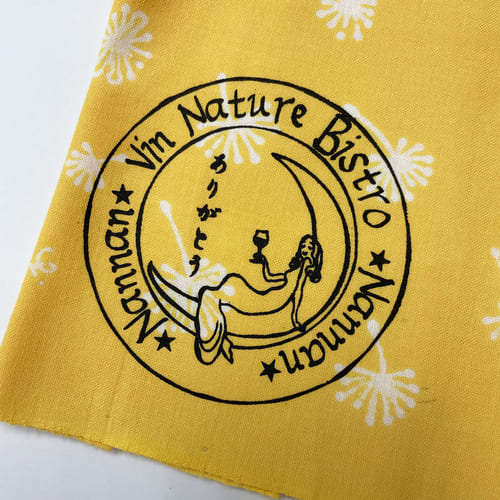 既存の手ぬぐいや無地染めの手ぬぐいにお持ち込みのロゴやマークをお入れします。 1枚から制作できるので、小ロットをご希望の方におすすめです。