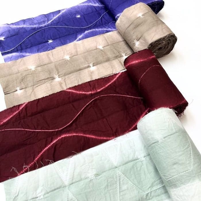 やわらかな布ならではの風合いと、制作の痕跡そのものを感じられるのが、有松絞りのあて布の魅力です。有松絞りのものづくりの過程から生まれた、希少な布素材としてお楽しみいただけます。