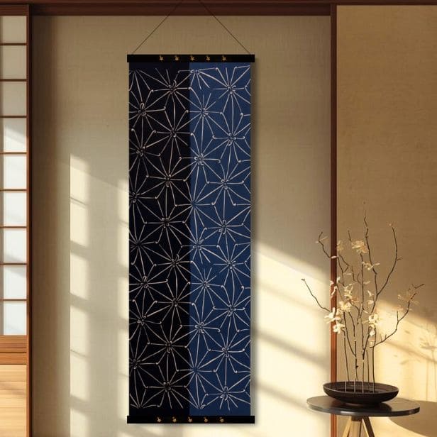 Traditional Tokushima Awa Indigo Dyed Tenugui : Asanoha Pattern