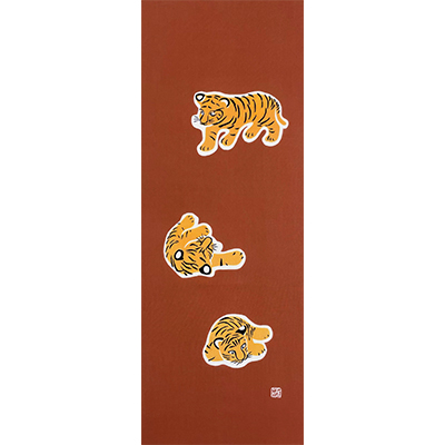 This is a tenugui for the year of the tiger, the zodiac sign. It is dyed in gentle colors with adorable tiger children playing happily.