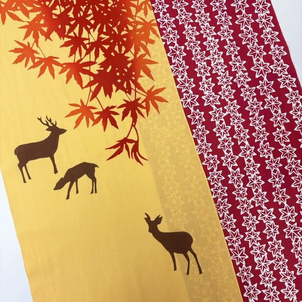 Autumn leaves in fiery crimson are like a carpet in autumn. We drew a view of deepening autumn on the Tenugui. The fine patterns on the moulds are hand-made by the skilled craftsmen of Ise.