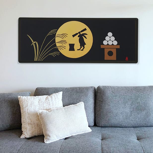 The pattern on the moon’s surface looks like a rabbit making rice cakes, so the moon, rabbit, dumplings, and Japanese pampas grass are considered the symbol of “Otsukimi (moon viewing)”.