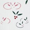 雪うさぎとは、雪玉にゆずり葉を耳に、南天の実をつけて作るお正月飾り。南天は「難が転じる」という音から冬の縁起物として親しまれています。雪景色のような白の地色に小さな雪うさぎと南天を賑やかにデザインしました。画家のやまなかももこによる原画作品シリーズです。