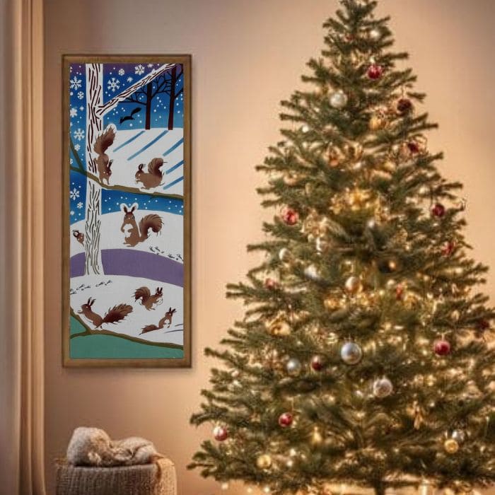 手ぬぐい「雪のエゾリス」 原画作家:やまなかももこ