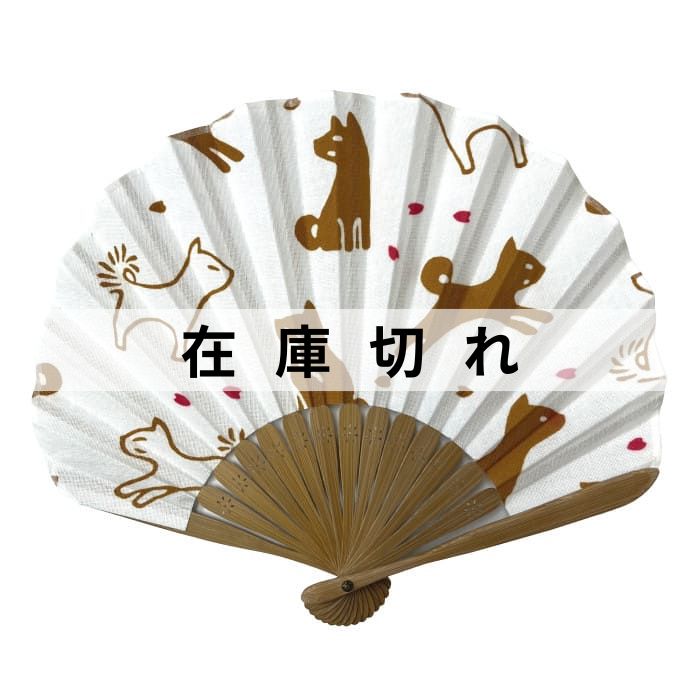 麻の葉オリジナルの手ぬぐい「桜と犬」を扇面に使って制作したおしゃれな扇子です。